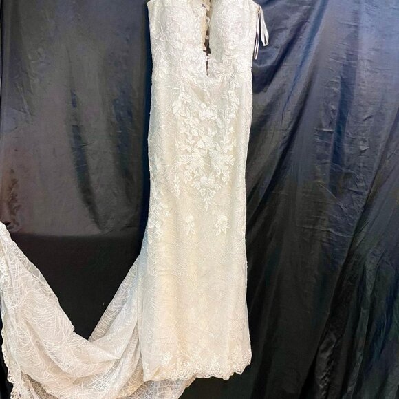 Chic floral lace gown in a beautiful white shade. Ideal for weddings or formal events.