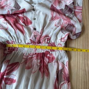 Embrace elegance with this chic floral midi dress. The pink and cream design adds a touch of sophistication to your wardrobe.