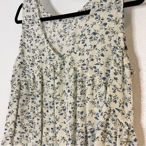 Chic Floral White and Blue Sleeveless Blouse size 2XL