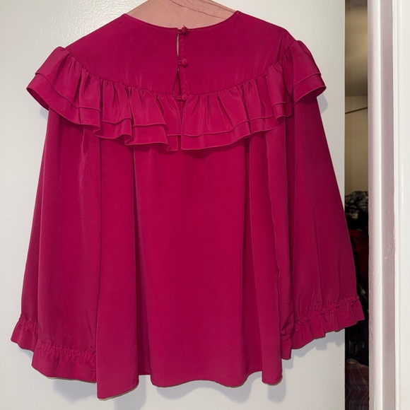Add a pop of color to your wardrobe with this chic fuchsia blouse. Featuring elegant ruffle details, it's perfect for any occasion.
