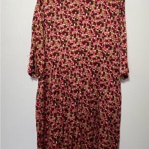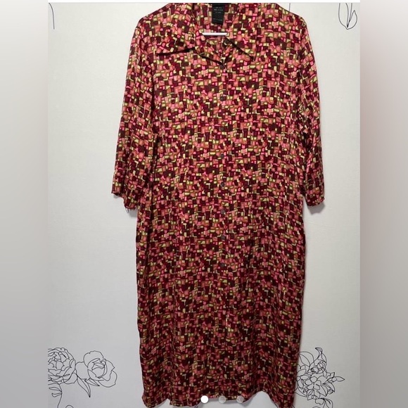 Stylish dress with a vibrant geometric pattern. Perfect for any occasion. This is giving prada early aughts vibes to me. All silk