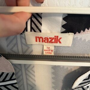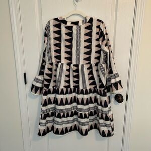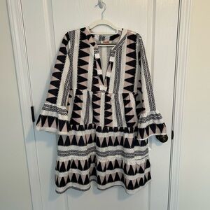 Stylish dress with a black and white geometric pattern. Perfect for any occasion.