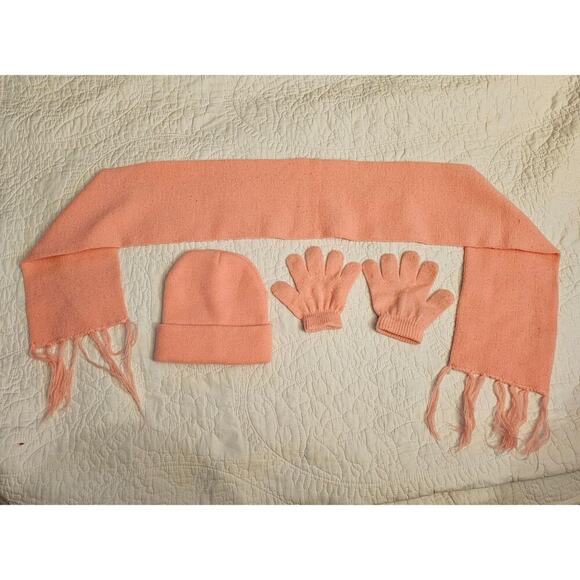 Chic Girls Pink Knit Winter Set Beanie Hat Gloves & Scarf Bundle Cold Snow Days
