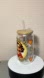 Chic Glass Tumbler with Straw - Brown and Gold