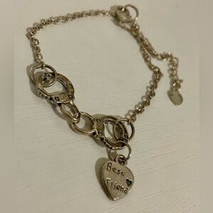 Stylish gold bracelet with a heart charm engraved with 'Best Friend'. A perfect accessory to express your friendship.