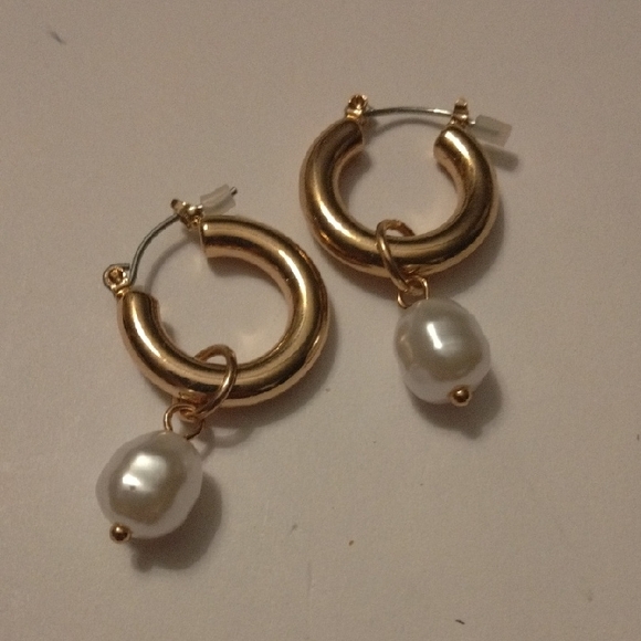 These chic gold hoop earrings are adorned with elegant pearl accents, adding a touch of class to any ensemble.