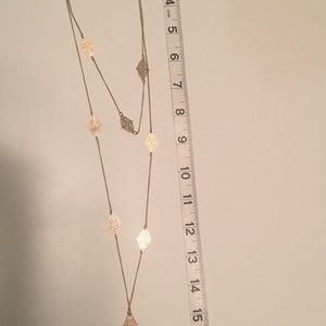 Sophisticated necklace for night out or work. Gold, no tarnishing. Great condition. Adjustable. Sorry I know these aren't the greatest pictures, gotta post more soon. I accept offers! So cute in person.