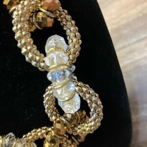 Elegant necklace with intertwined gold and silver loops. Perfect for any occasion.