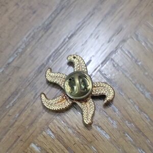 Stylish gold tone starfish pin. Ideal for ocean-themed outfits. Has chain hole available if u want to convert into pendant see photos