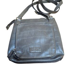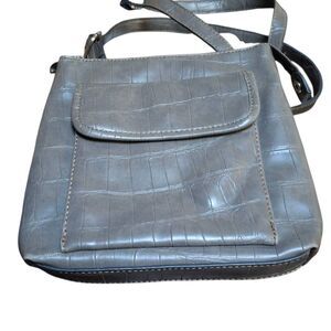 Chic Gray Croc-Embossed Relic Crossbody Bag – Adjustable Strap, Multiple Pockets