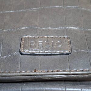 This Relic crossbody bag in a sleek gray croc-embossed faux leather is perfect for everyday wear with a touch of sophistication. Designed for function and style, it features a front zip pocket, multiple interior compartments, card slots, and an ID window, making it ideal for hands-free organization on the go.