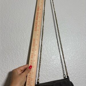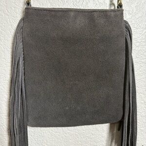 Chic Gray Suede Leather Gold Chain Crossbody Bag with Fringe on Both Sides.