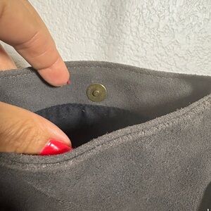 Elevate your style with this chic gray suede crossbody bag. Featuring elegant fringe details and gold chain, it's perfect for any occasion.