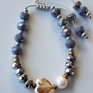 This chic bracelet showcases a beautiful blend of gray and gold beads, perfect for elevating your style. Its versatile design makes it an essential accessory for any wardrobe.