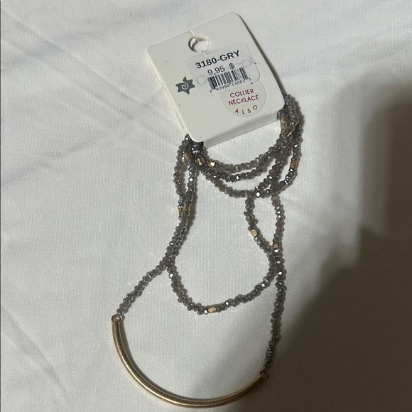 Enhance your style with this chic necklace featuring shimmering gray beads and a sleek gold accent. Perfect for any occasion.