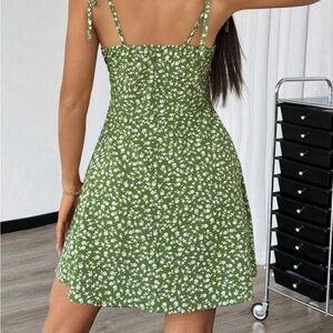 Chic Green Floral Mini Dress with Rouched bust Detail 8115