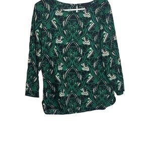 Stylish blouse with a bold green pattern. Perfect for any occasion. popover blouse in retro floral print blouse. size small Pit to pit 20” shoulder to hem 25”