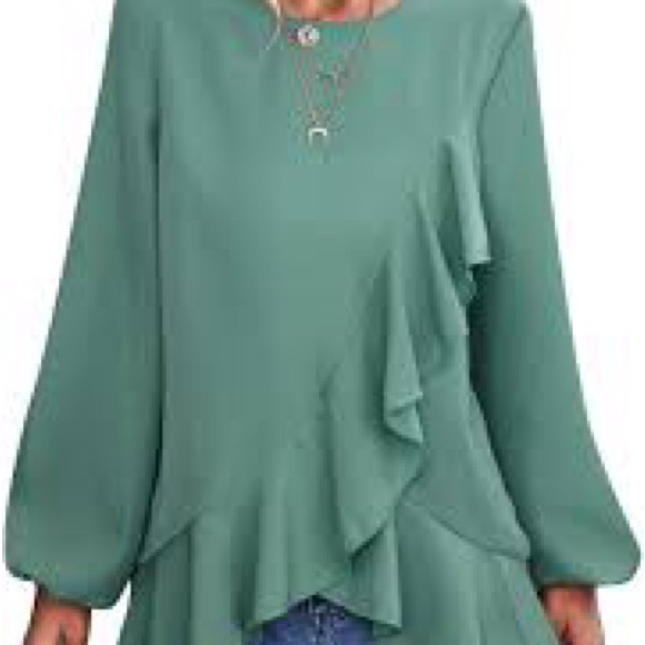 Elegant green blouse with ruffle details. Perfect for any occasion. Stylish and comfortable.