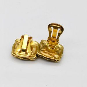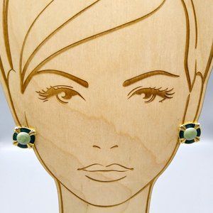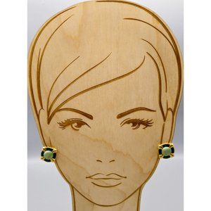 Chic Green Square Earrings in Gold Tone Vintage Chic Clip Ons, Glitter and Swirl