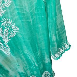 This elegant green Beach cover up features intricate embroidery that adds a touch of sophistication to your look. Its flowing design ensures comfort and style, making it perfect for both casual outings and special occasions.