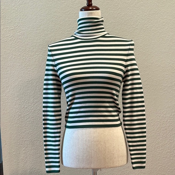 Elegant turtleneck with green and white stripes by Zara. Ideal for a stylish look. Sz Lg