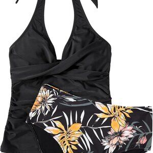 Chic Halter Tankini Swimsuit for Women - Slimming Tummy Control in Floral Design