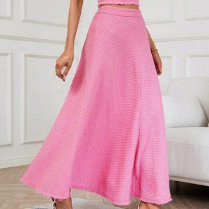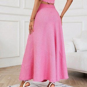 Chic High Waist A-line Maxi Skirt and top set Pink