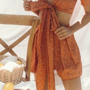 Step out in style with these chic high waist orange shorts. Perfect for casual outings, they combine comfort and fashion effortlessly.