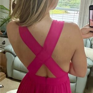 Step out in style with this elegant fuchsia high-low dress.