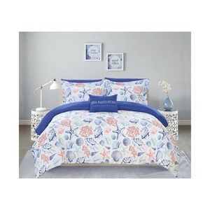 Chic Home Dalis Sea Sand Surf Ocean 8 Pc. Reversible Bed In A Bag QUEEN Multi