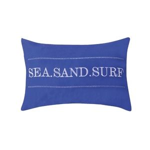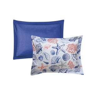A modern comforter set with everything you need to give your bedroom a bold, fresh look. The comforter features a printed Sea, Sand, Surf theme on the face featuring starfish, conches and shells on a sandy white field with a solid blue backing on the reverse. Design coordinated super-soft microfiber sheets, pillowcases, reversible pillow shams and an embroidered Sea.Sand.Surf decorative pillow are included to complete the look.