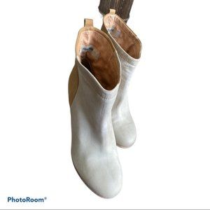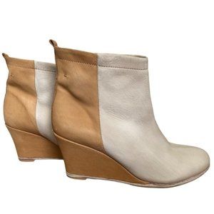 Chic Humanoid Two-Tone Leather Wedge Ankle Boots Tan Cream Color-block Sz 39