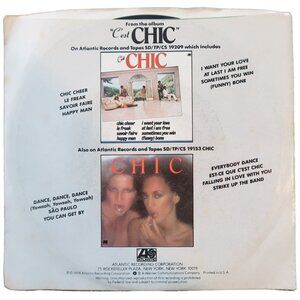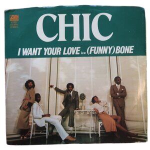 This vintage 1978 45 RPM vinyl record features Chic's iconic tracks, "I Want Your Love" and "(Funny) Bone." A timeless piece of music history.