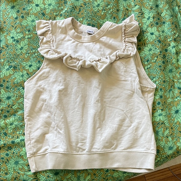 Elegant ivory blouse with charming ruffle details. Perfect for adding a touch of sophistication to any outfit. Light sweatshirt material. Worn once.