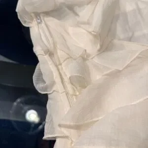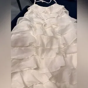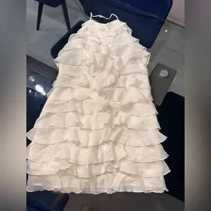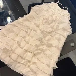 Chic ivory dress with layered ruffles. Perfect for elegant occasions. Breathable. Halter. Secures the back with a bow. Side zipper. Never used. Size: M.