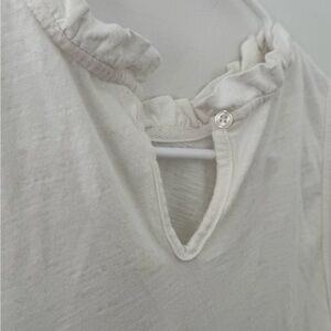 This chic ivory tank top features a delicate ruffle neckline, perfect for adding a touch of elegance to your wardrobe. Ideal for casual outings or dressing up for a special occasion.