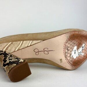 Chic Jessica Simpson Suede Pumps with Snakeskin Block Heels – Size 7.5