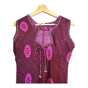 Elevate your style with this chic kurta, featuring a stunning combination of purple, light and dark. Perfect for any occasion. Wear it to your next Asian event or pair it with some leggings or skinny jeans for an exotic look!