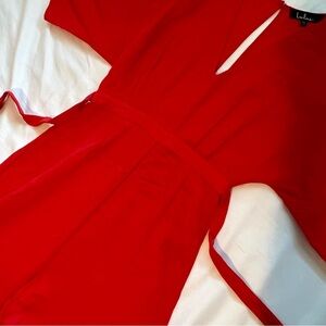 Chic La Vie Coral Red Wide-Leg Jumpsuit