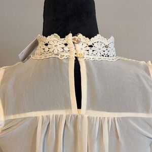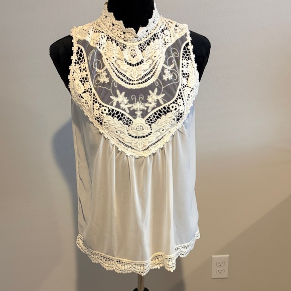 Elevate your style with this chic blouse featuring a delicate lace overlay in a soft cream hue. Perfect for any occasion.