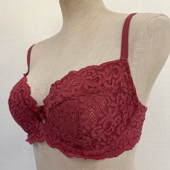 Indulge in the luxurious feel of this chic lace underwire bra, designed in a rich burgundy hue. Perfect for adding a touch of elegance to your lingerie collection.
