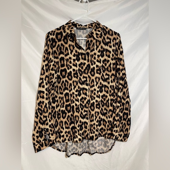 Elevate your style with this chic leopard button down shirt. Perfect for adding a bold touch to any outfit.