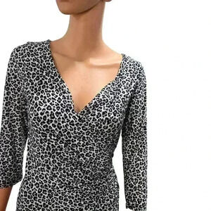 Turn heads with this stunning leopard print bodycon dress! Designed to accentuate your curves, this dress features a bold leopard print, a flattering V-neckline, and 3/4 sleeves, perfect for both day and night looks. The midi length adds an elegant touch, while the soft and stretchy fabric ensures comfort all day. Ideal for parties, date nights, or any occasion where you want to make a statement.