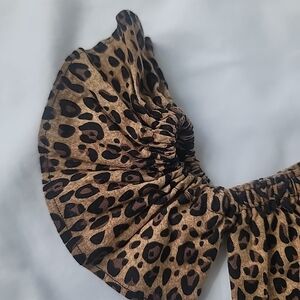 Trendy top with a striking leopard print. Features stylish ruffle sleeves.