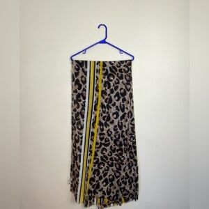 Add a touch of wild glamour to your outfits with this stylish leopard print scarf! Featuring vibrant stripes in yellow and black, this accessory is perfect for elevating any look.