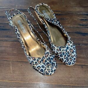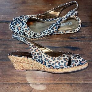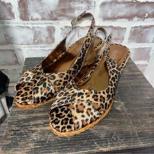 Stylish leopard print wedges. Slingback design. Perfect for dressing up or dressing down.
