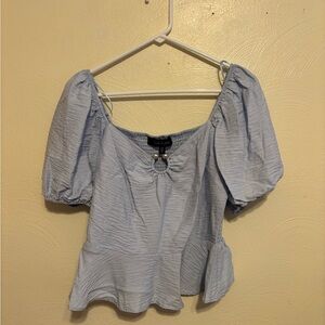 Discover elegance with this chic light blue blouse featuring stylish puff sleeves. Ideal for any occasion.