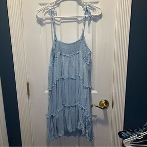 Step out in style with this chic light blue mini dress. Featuring delicate ruffles, it's perfect for any occasion.