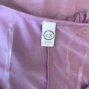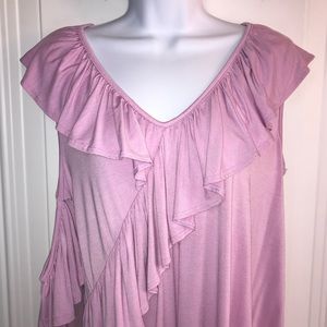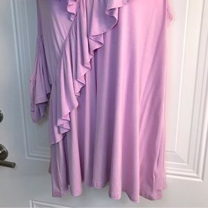 This chic lilac blouse features elegant ruffle details, perfect for adding a touch of sophistication to your wardrobe.