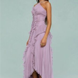 Embrace elegance with this chic lilac ruffled maxi dress. Perfect for any occasion, it adds a touch of sophistication to your wardrobe. Brand new with tags.